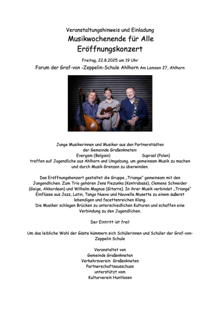 Der Landkreis Oldenburg und die Gemeinde Großenkneten fördern dieses Konzert.